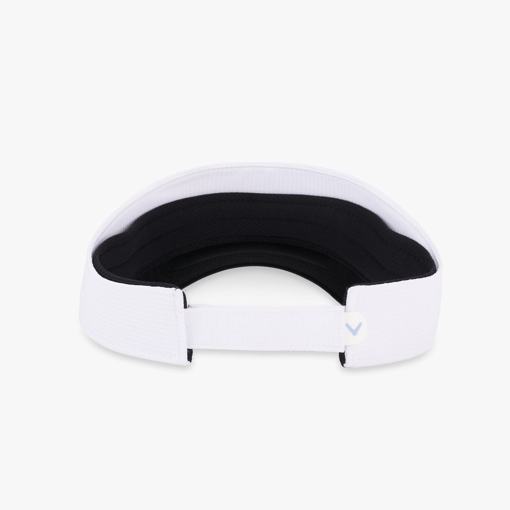 Visor de mujer, color blanco/Hydrangea con un tejido de alto rendimiento de diseño simple y elegante, banda transpirable refrescante, un logotipo metálico unico y un cierre ajustable.