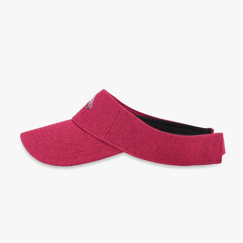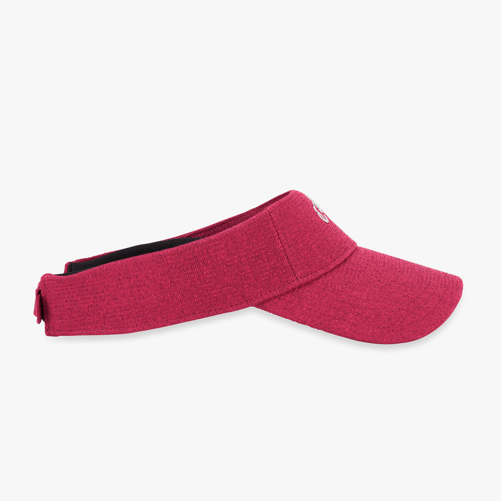 Visor de mujer, color rojo tinto/plateado con un tejido de alto rendimiento de diseño simple y elegante, banda transpirable refrescante, un logotipo metálico unico y un cierre ajustable.